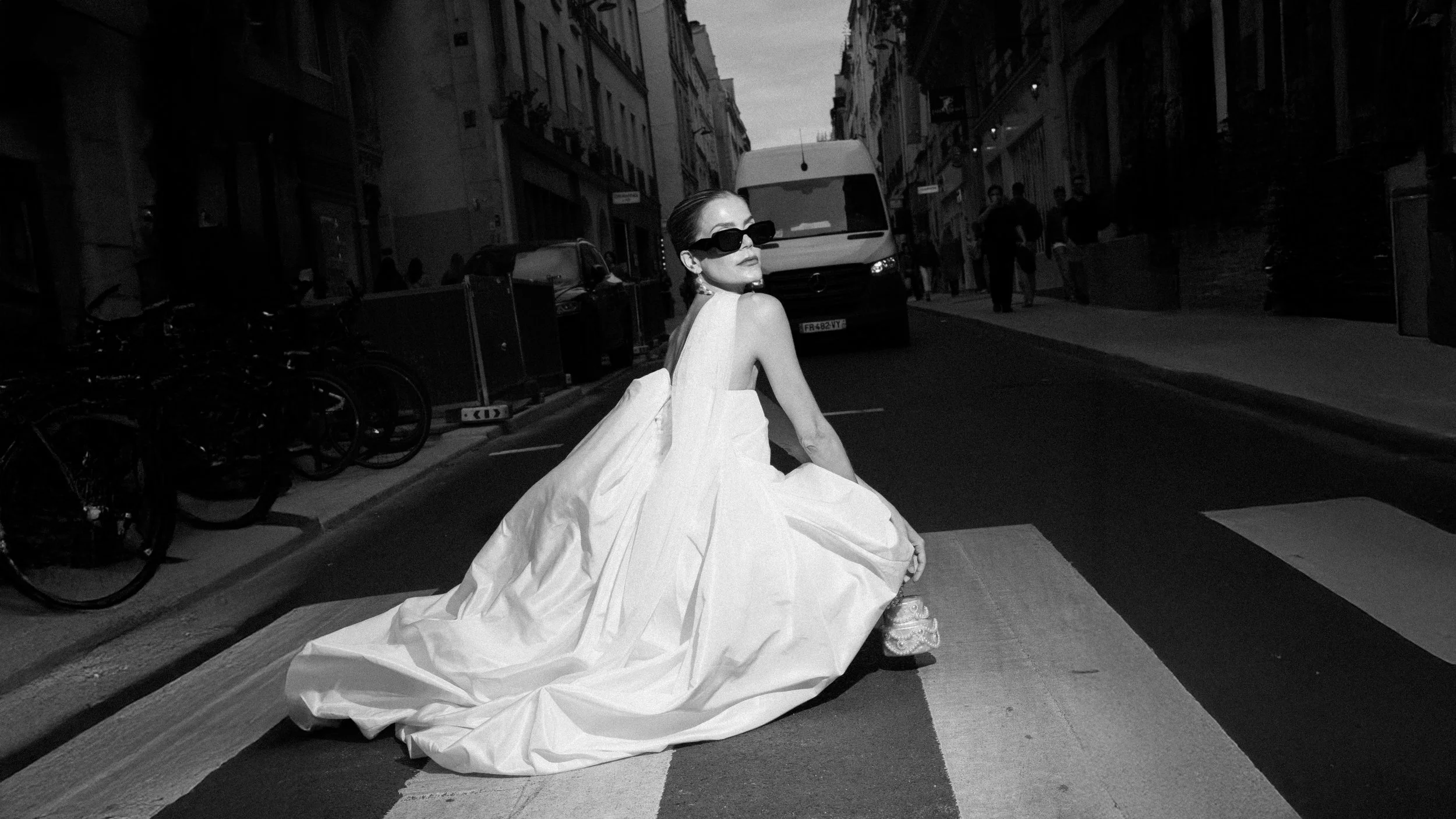 Timing matters. Early mornings are golden for quiet streets and soft light; late evenings are great for city-night b-roll. When I’m planning elopements and bridal dress campaigns in Paris I always start early before the main tourist events open. For that amazing sunrise you want to be meeting your couples at Trocadero viewpoint no later than 7am in summer. The issue that you’re going to face is that tourists from the night before will have congregated here to watch the lights come on the Eiffel Tower - and unfortunately there will be lots of litter in the square the following morning. For elopement photography on cameras such as the Sony A7iv or Canon D200 with the L series lenses, the pixel count means that you can easily take out distractions using the brush tool in Lightroom, or even remove distractions using either Photoshop or using an AI service such as aftershoot. I’ve even managed to swing a couple into the Paris St Germain football club at their Parc Des Princes.